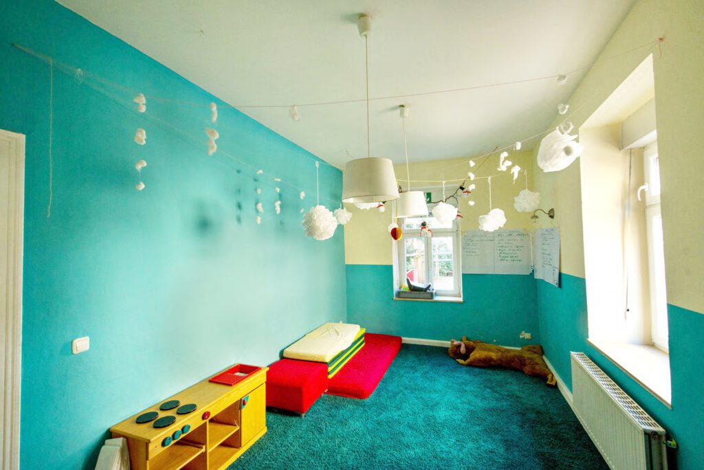 Das flexible Spielzimmer: Hier gibt es Platz zum Toben, aber auch die nötige Ruhe für den Mittagsschlaf unserer Jüngsten.